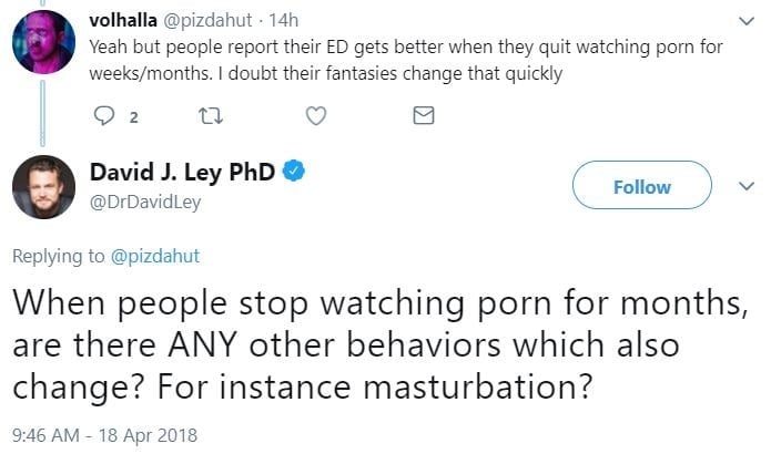Again, no urologist agrees with Ley’s assertion that masturbation causes ED in young men (notice that Ley never cites anything for support). However, Ley’s creed is “porn never causes any problems….ever.”