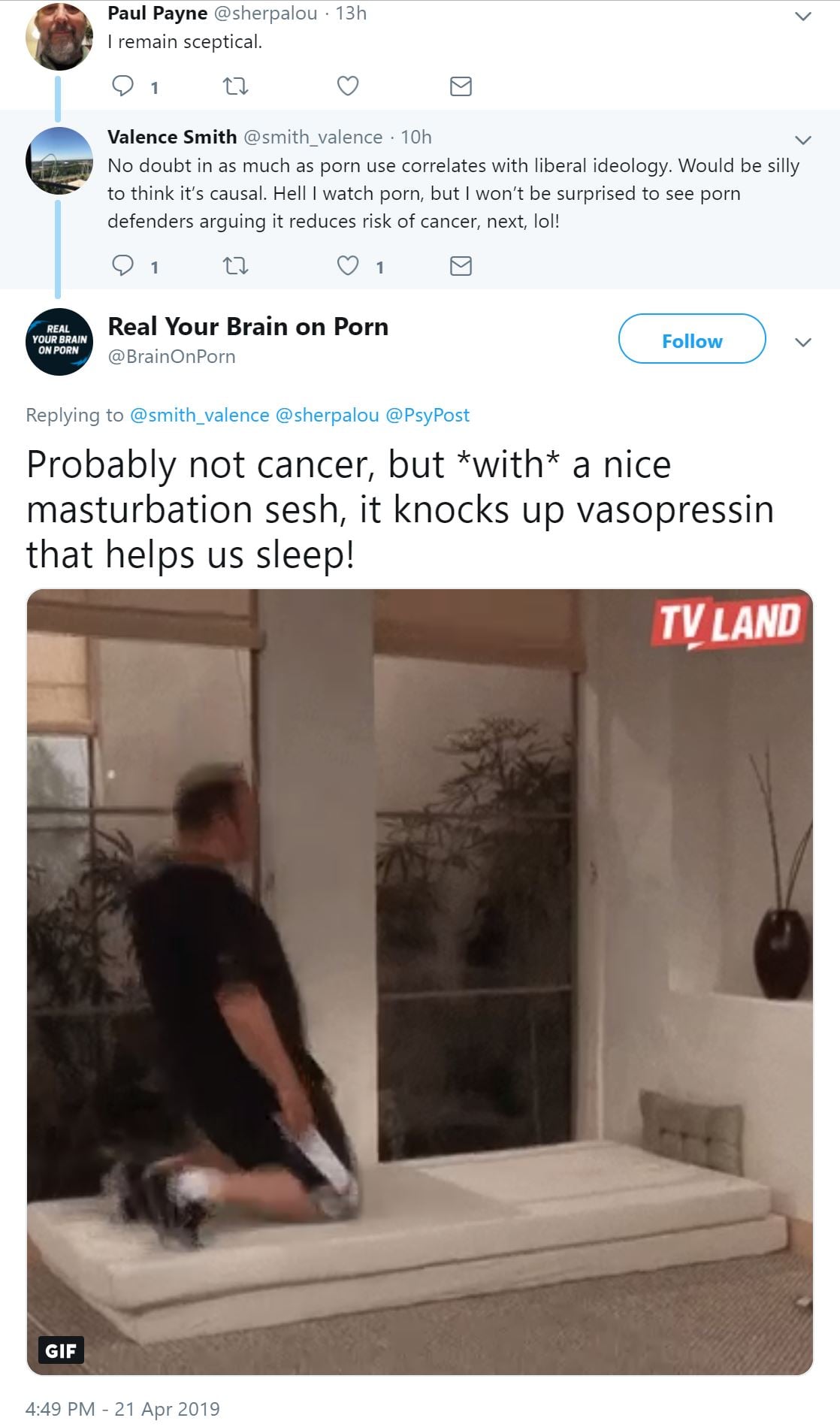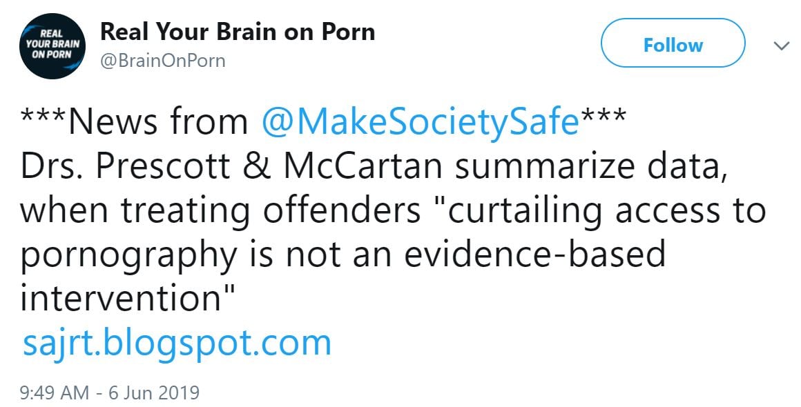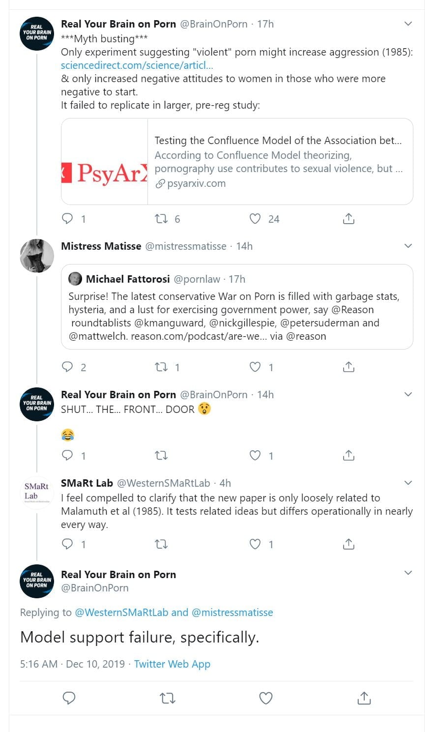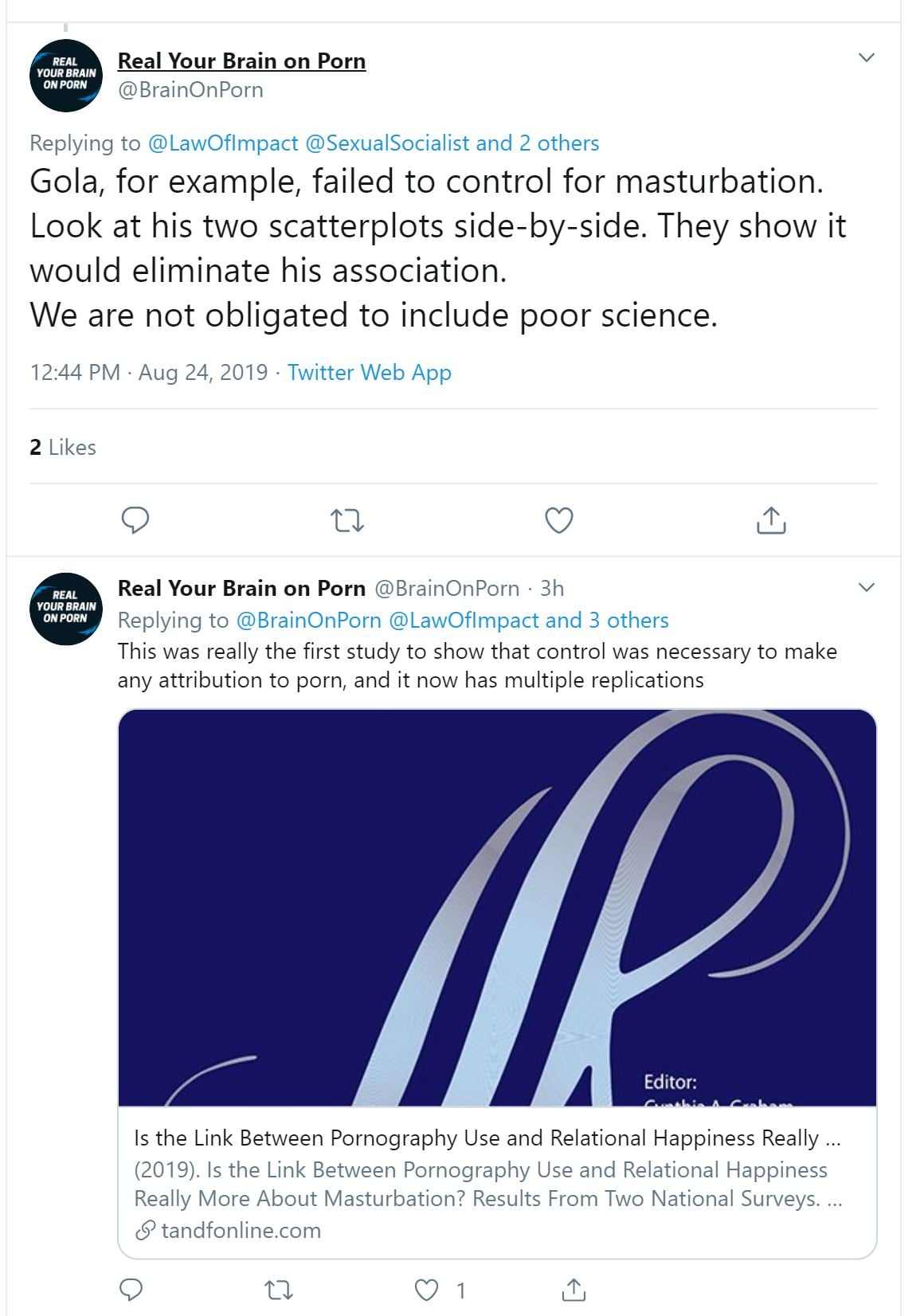 Actual sex expert, Professor Toates also exposed RealYBOP, Prause, and Ley as lying (Ley blocked Toates after the fact – which is why Ley’s tweet doesn’t appear):