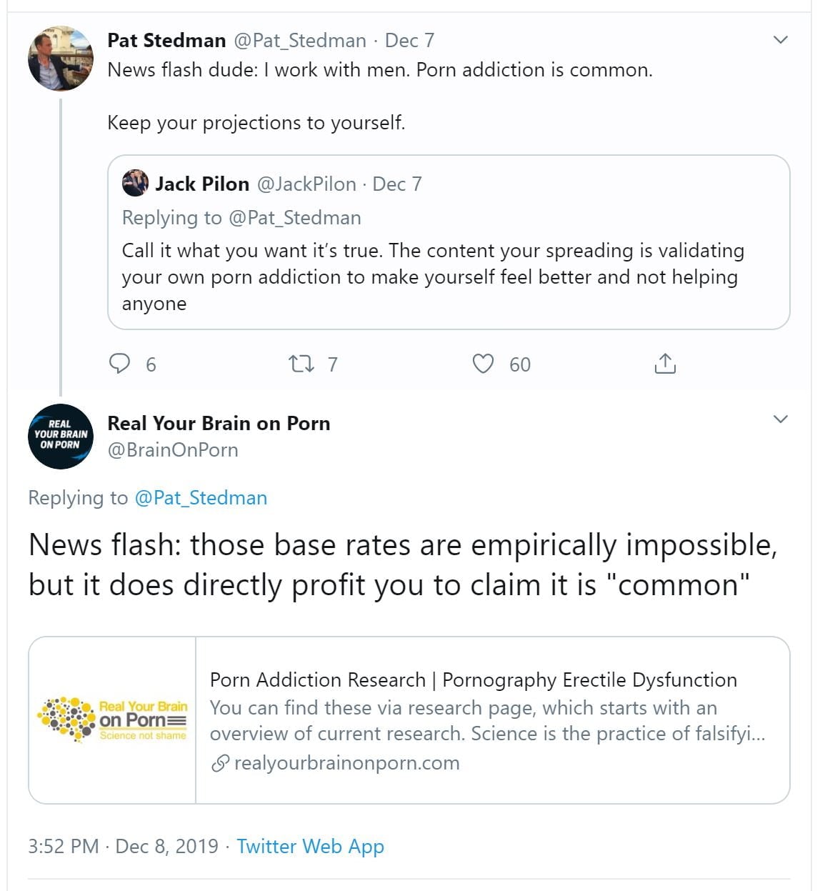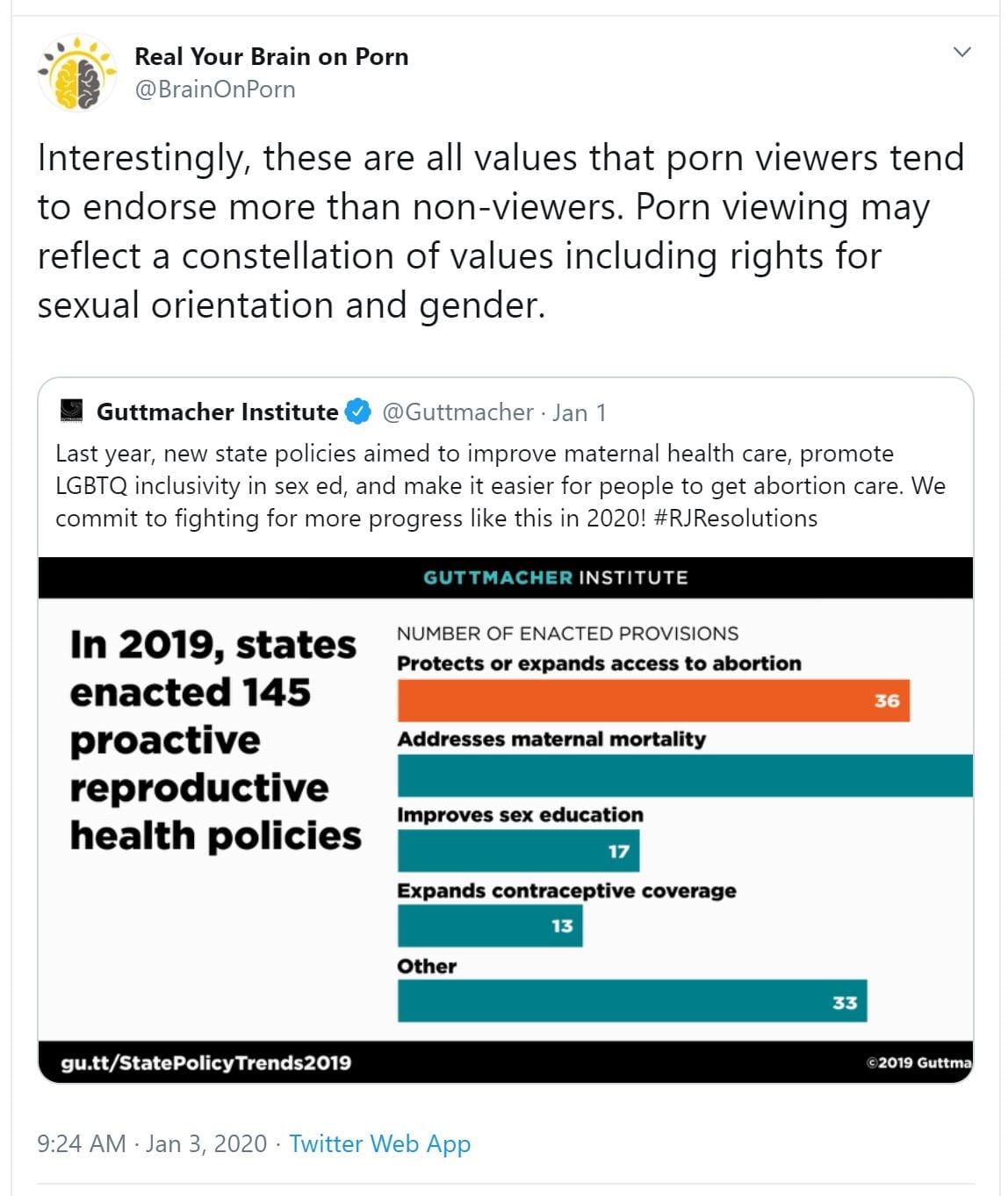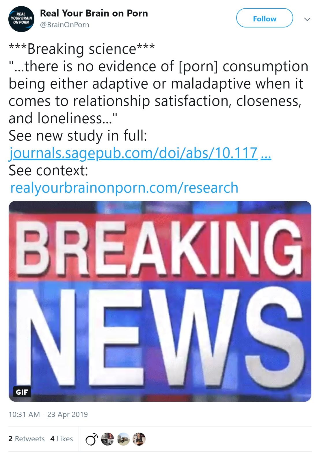 What a farce: the Twitter accounts for RealYBOP and Prause have never tweeted a single study reporting negative outcomes related to porn… even though the vast preponderance of pornography studies report negative outcomes. This alone exposes both accounts as promoting the porn industry’s agenda.