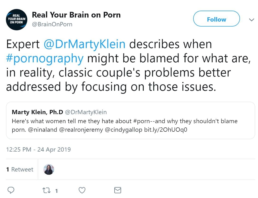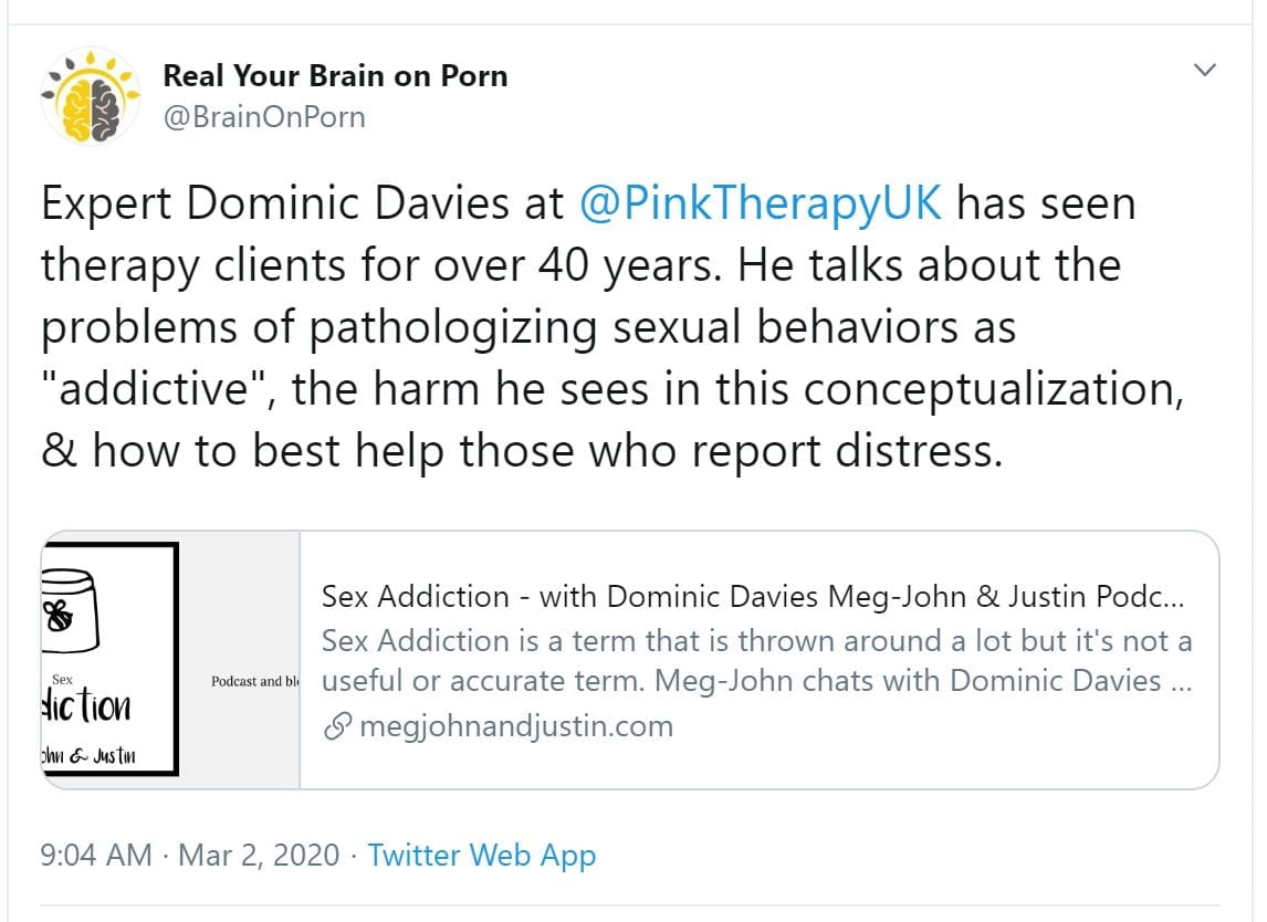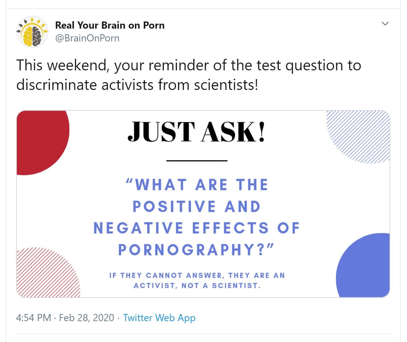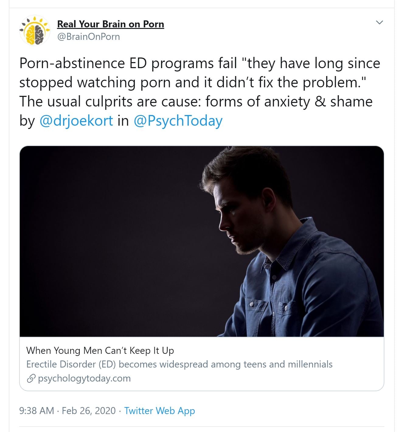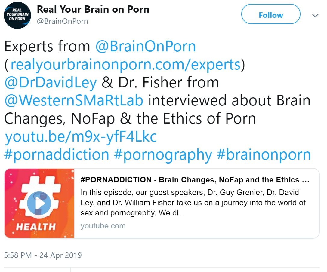 In their promotional tweet we are promised a slate of SHA brain experts to soothe users’ “porn anxiety” and “shame” (Ley and other SHA “experts” are light years away from being brain experts).