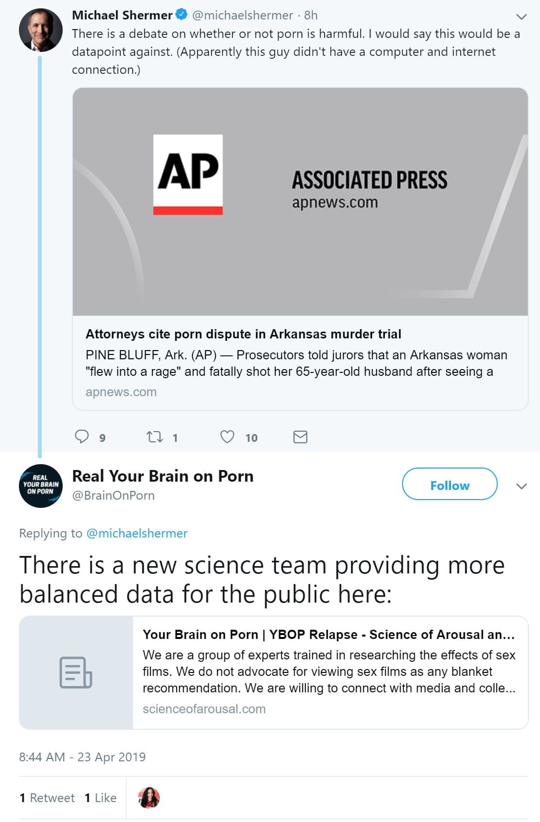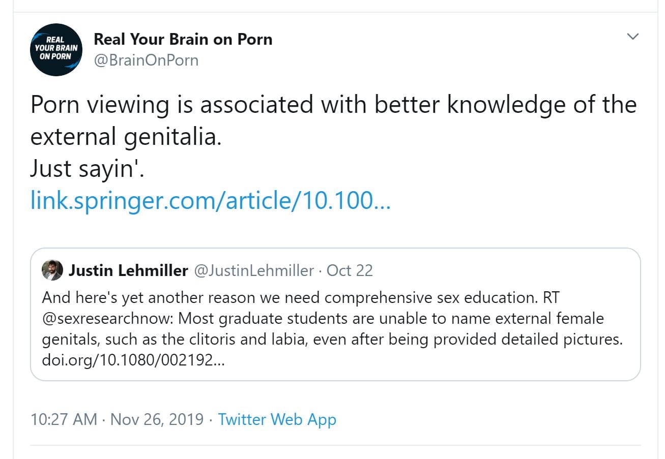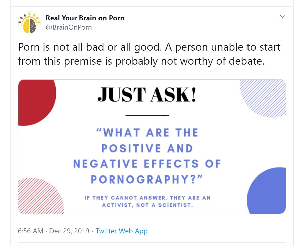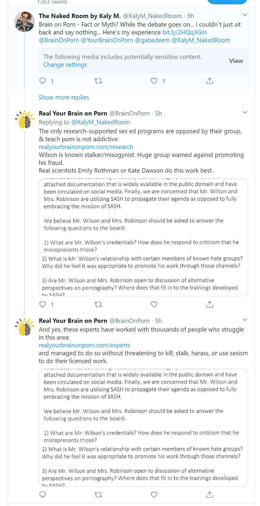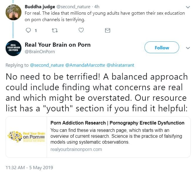 In their promotional tweet we are promised a slate of SHA brain experts to soothe users’ “porn anxiety” and “shame” (Ley and other SHA “experts” are light years away from being brain experts).