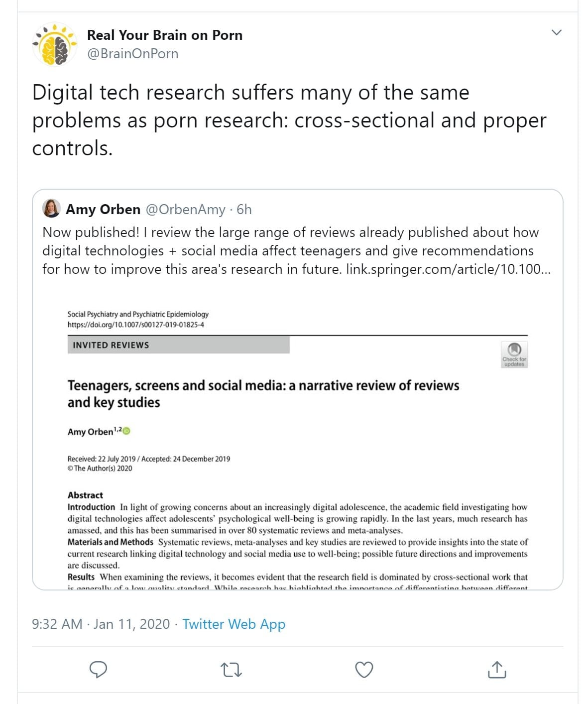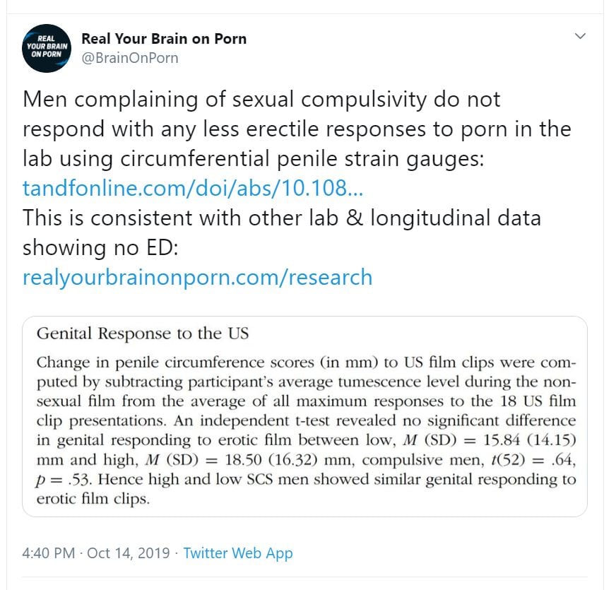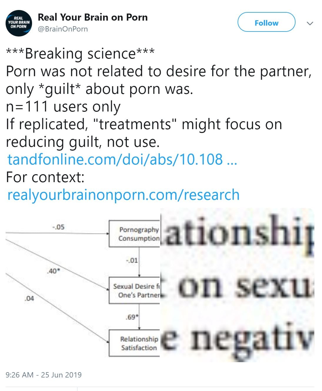 She links to her thoroughly discredited “research page” – Porn Science Deniers Alliance (AKA: “RealYourBrainOnPorn.com” and “PornographyResearch.com”). YBOP exposes the trademark infringers’ “research page,” including its cherry-picked outlier studies, bias, egregious omission, and deception.