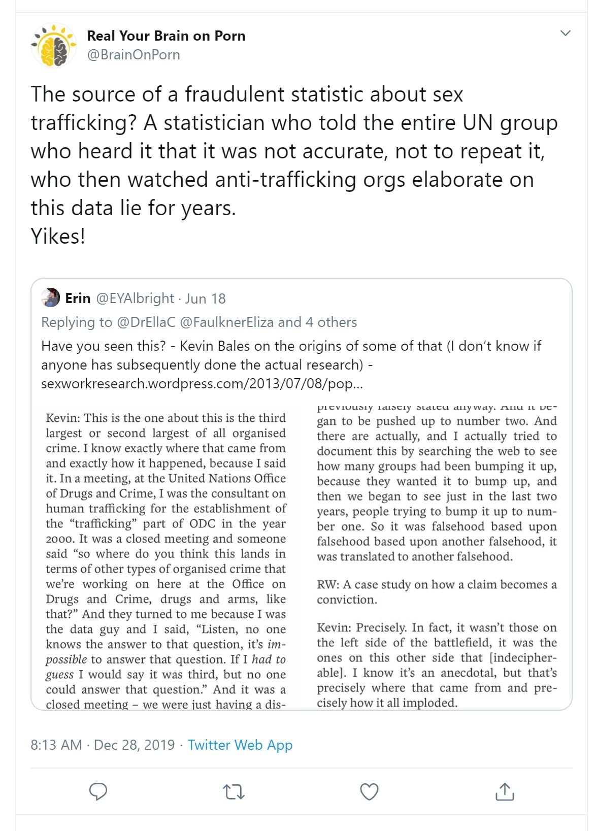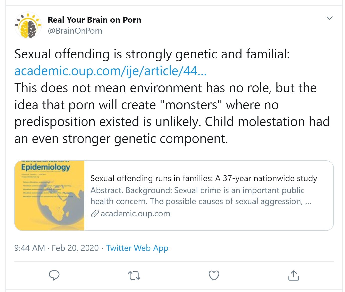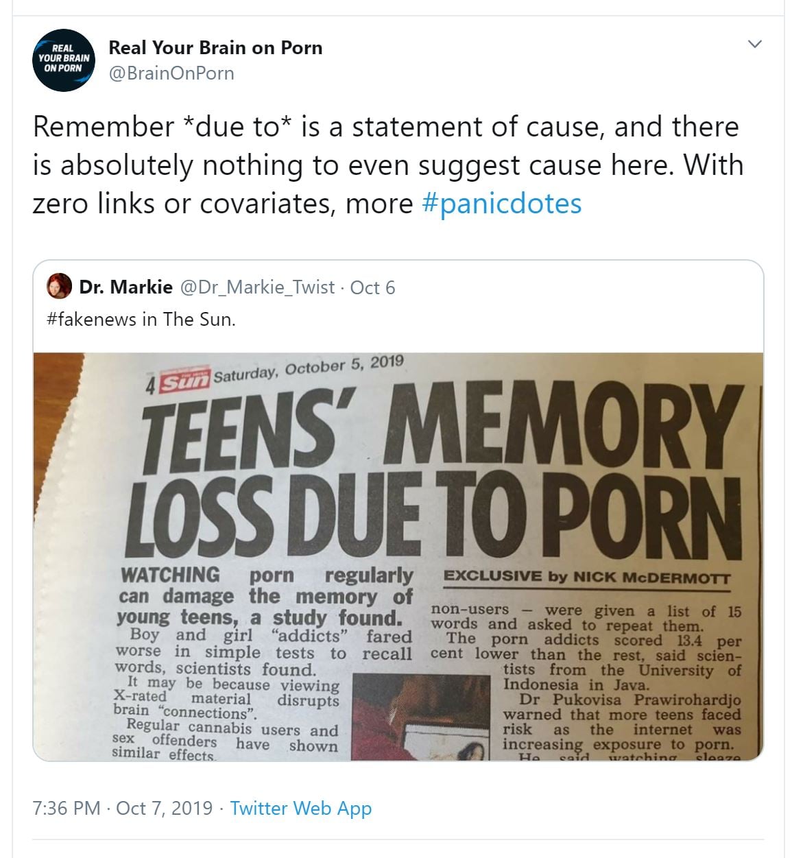 She links to her thoroughly discredited “research page” – Porn Science Deniers Alliance (AKA: “RealYourBrainOnPorn.com” and “PornographyResearch.com”). YBOP exposes the trademark infringers’ “research page,” including its cherry-picked outlier studies, bias, egregious omission, and deception.