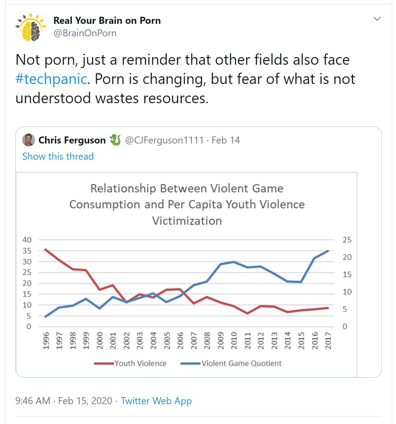 As usual RealYBOP also linked to fellow RealYBOP member Emily Rothman’s short opinion piece which cited nothing to support its dubious claims. It wasn’t a review or metanalysis, because all the reviews and meta-analyses on adolescent porn use counter Rothman’s opinion: review#1, review2, review#3, review#4, review#5, review#6, review#7, review#8, review#9, review#10, review#11, review#12, review#13, review#14, review#15.