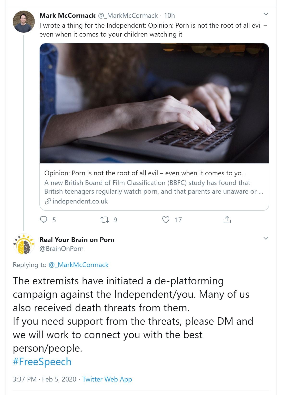 - Separate page documenting @BrainOnPorn’s 2nd year of pro-porn industry tweets (beginning April 17, 2020).