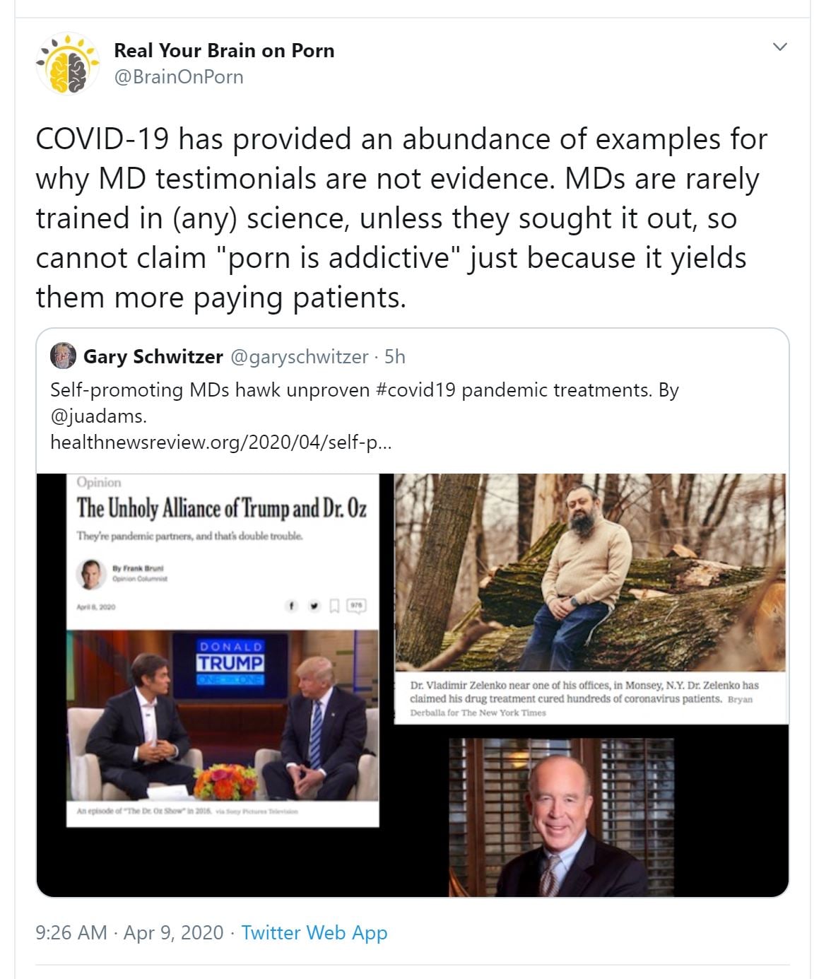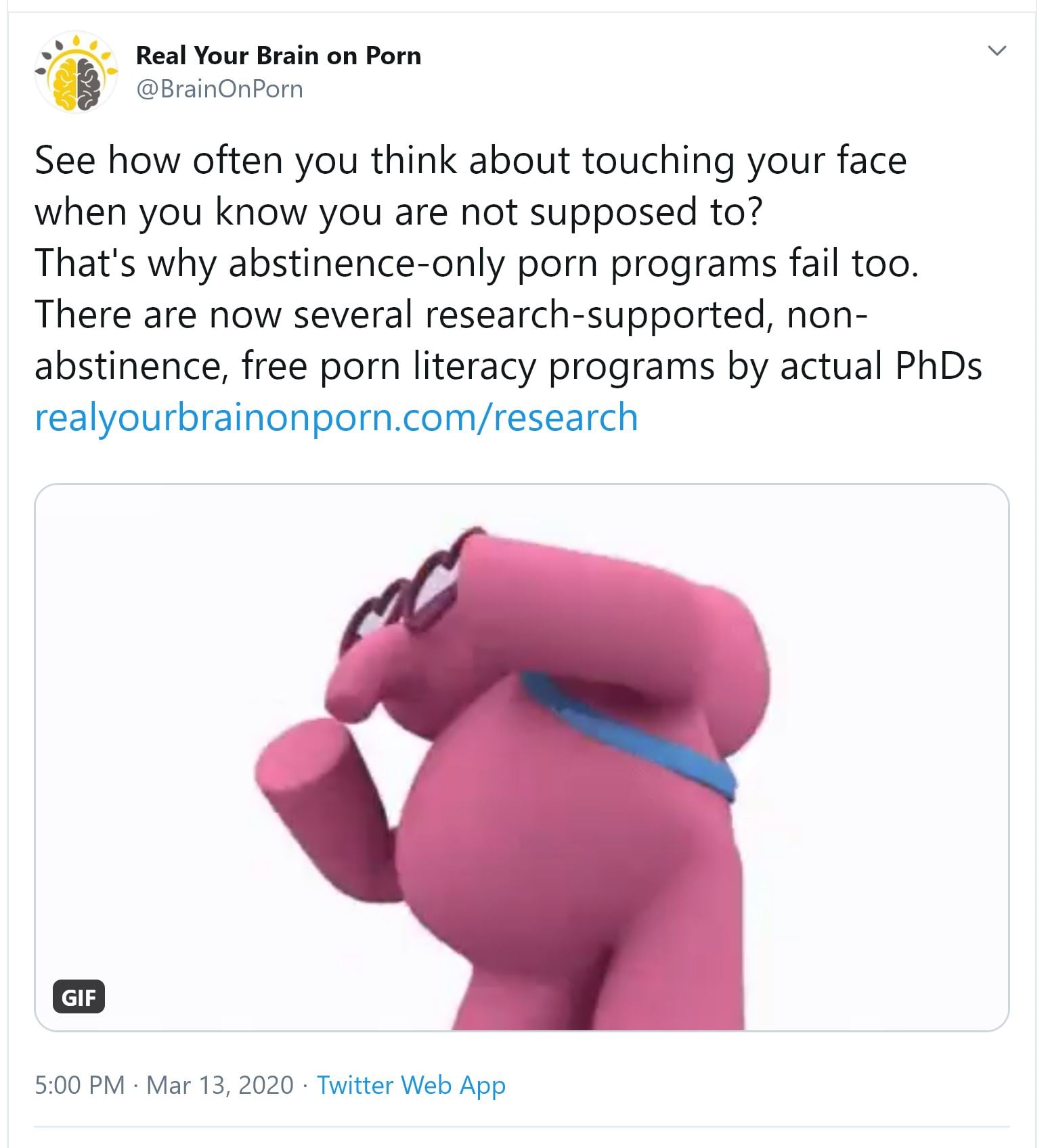 Once again, RealYBOP misusing the pandemic to attack the concept of porn addiction. This is how low she regularly stoops: