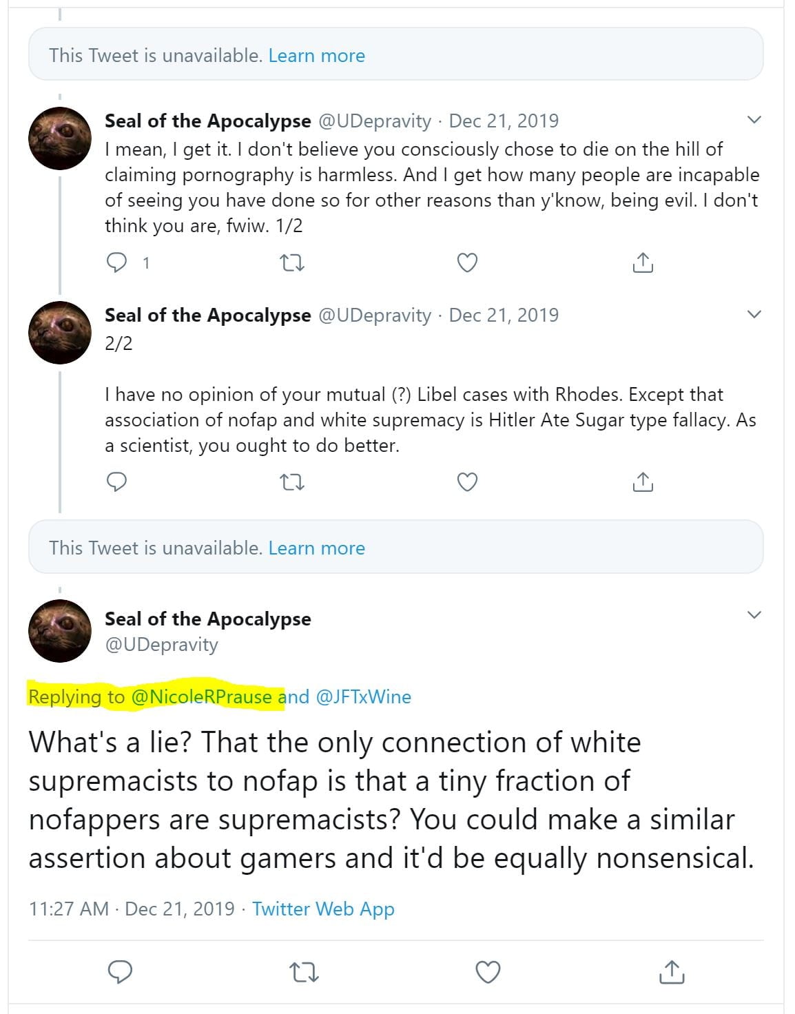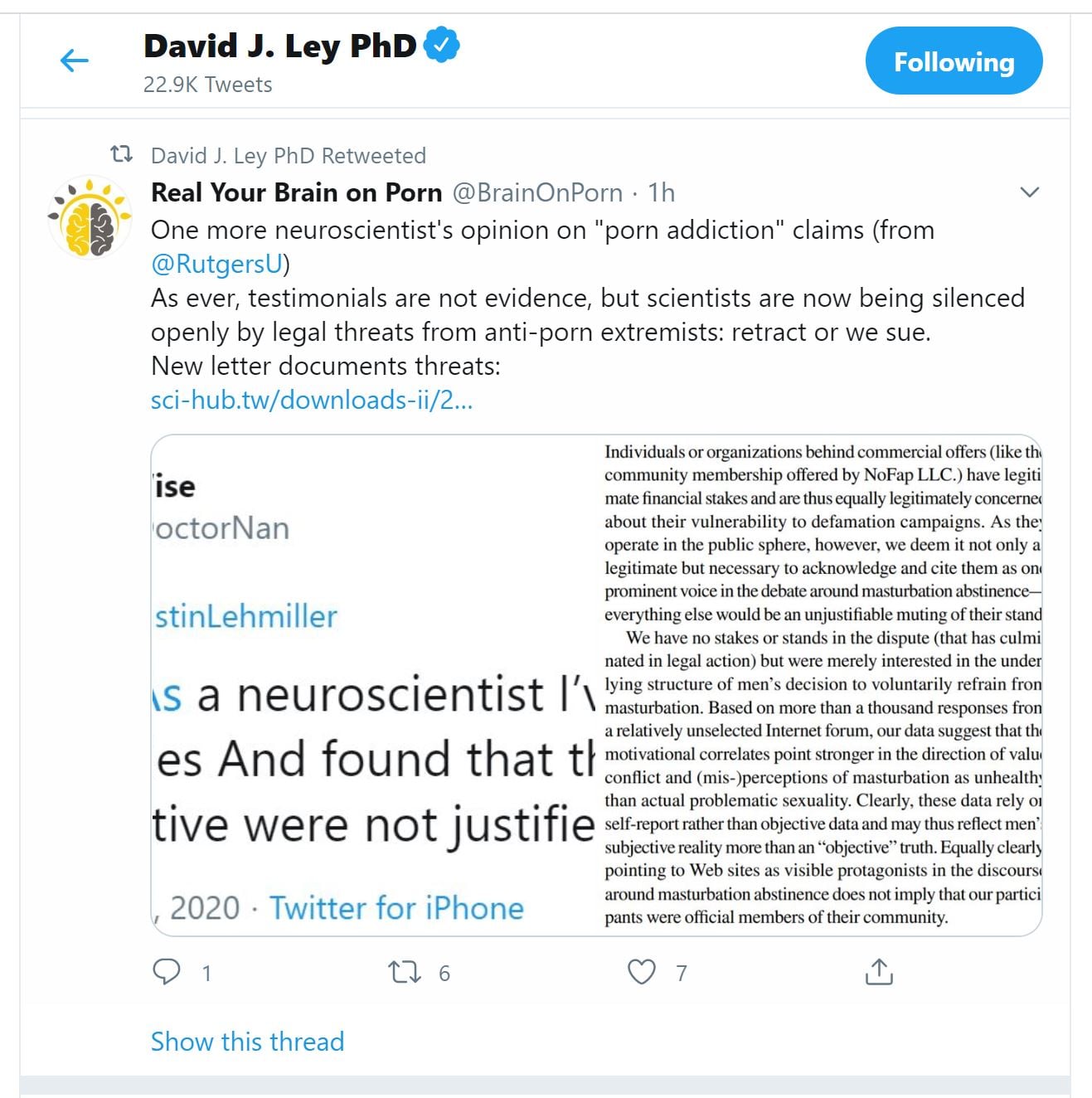 September 17, 2020: Continued attacks on Alex Rhodes & Nofap, even though he filed a defamation lawsuit against Nicole Prause (who is managing @BrainOnPorn twitter).