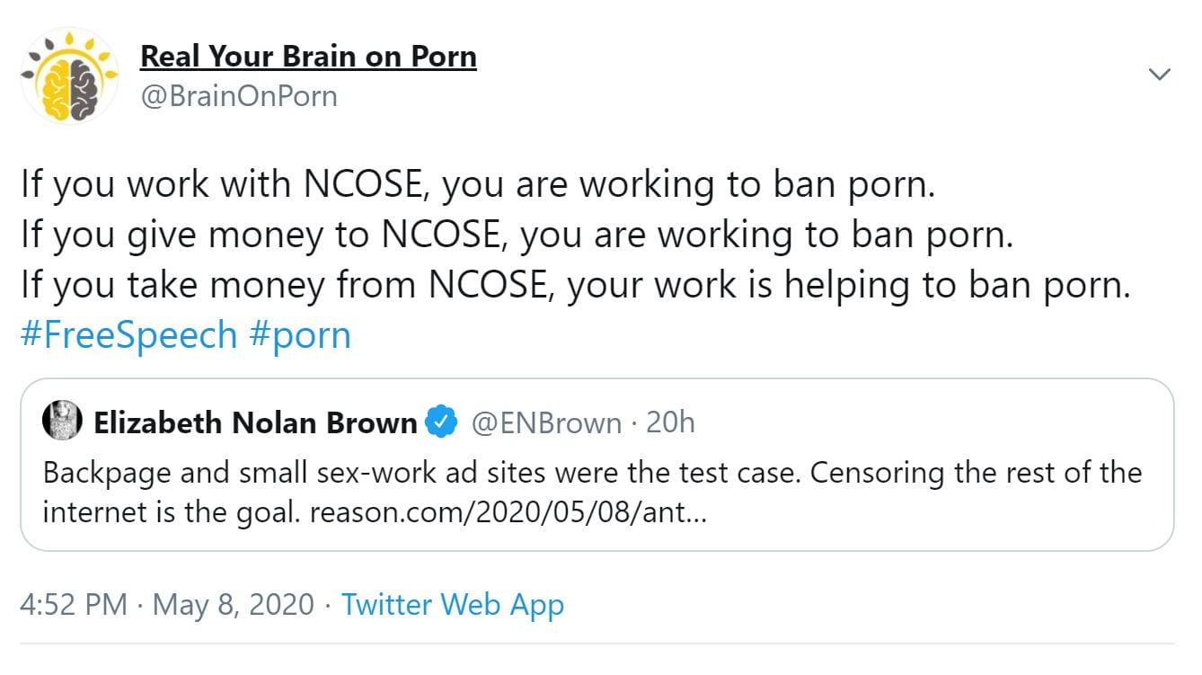 Tweets a “sex worker’s” propaganda in support of PornHub: