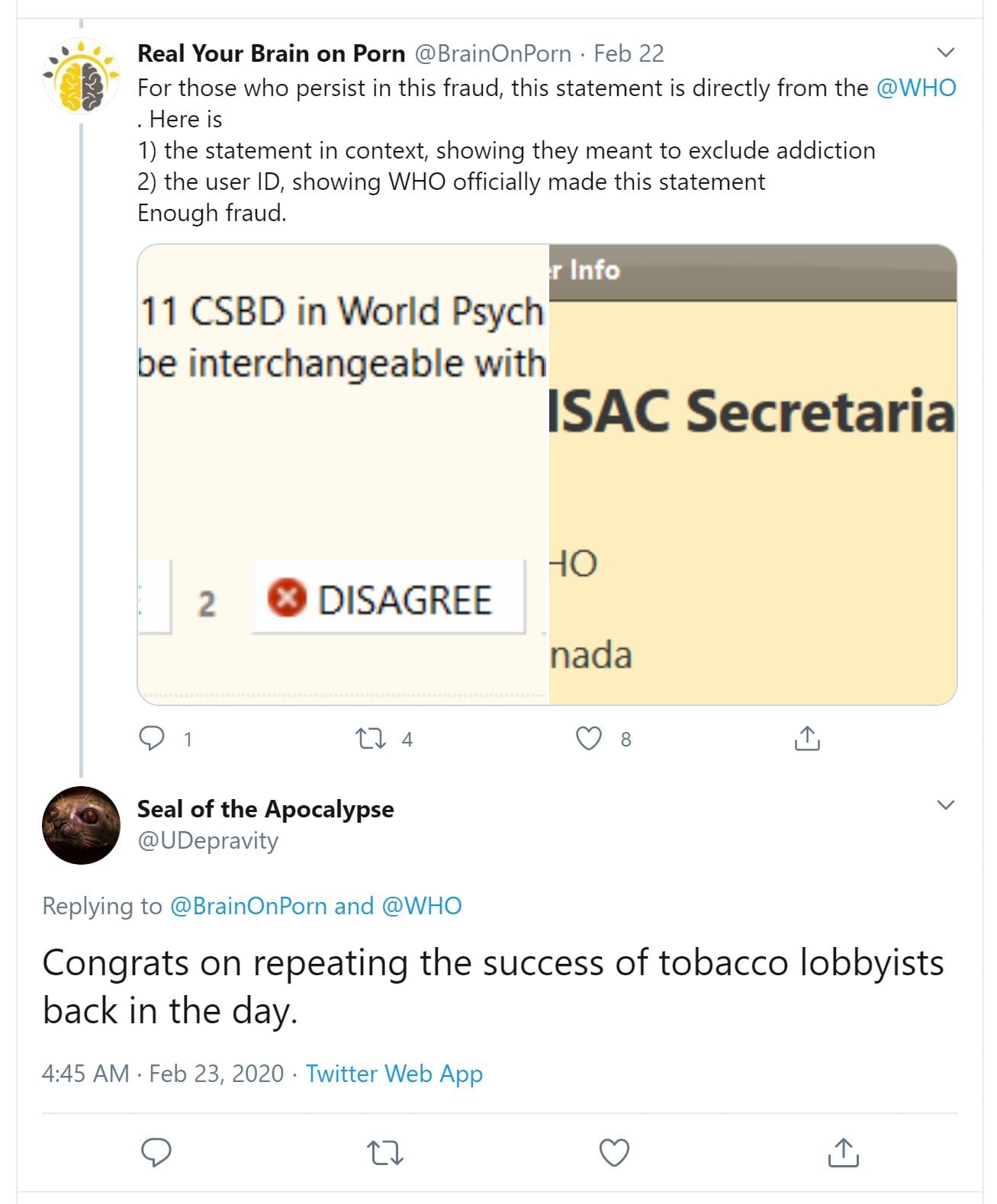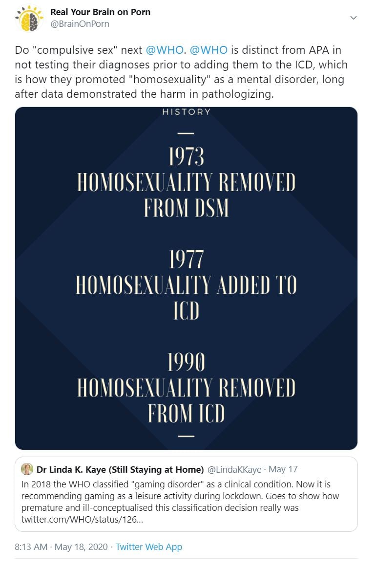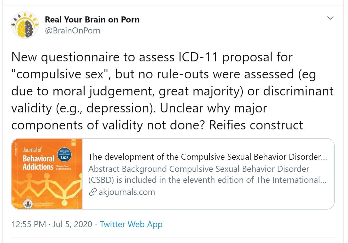 Still upset that porn and sex compulsivity are now diagnosable under the ICD-11 (CSBD)