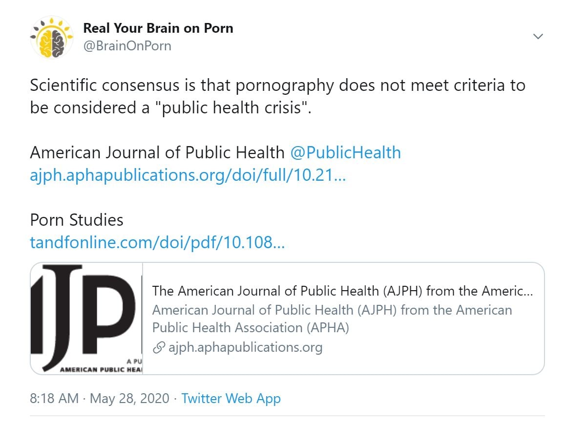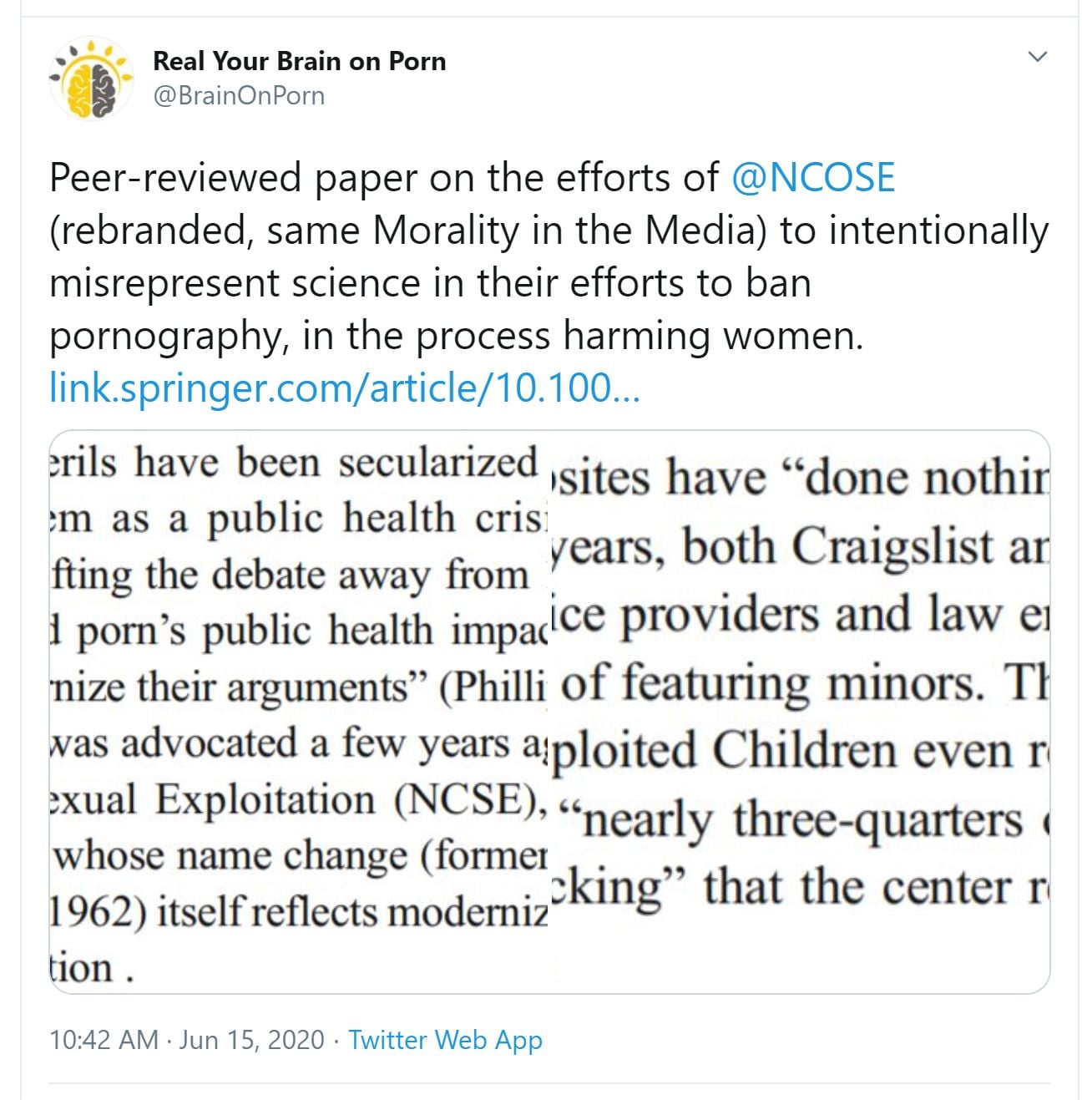 RealYBOP fabricates “errors” by NCOSE, and lies when claiming that the porn harms tweet said “the entire science has agreed on the topic“. The NCOSE page in question: https://endsexualexploitation.org/publichealth/