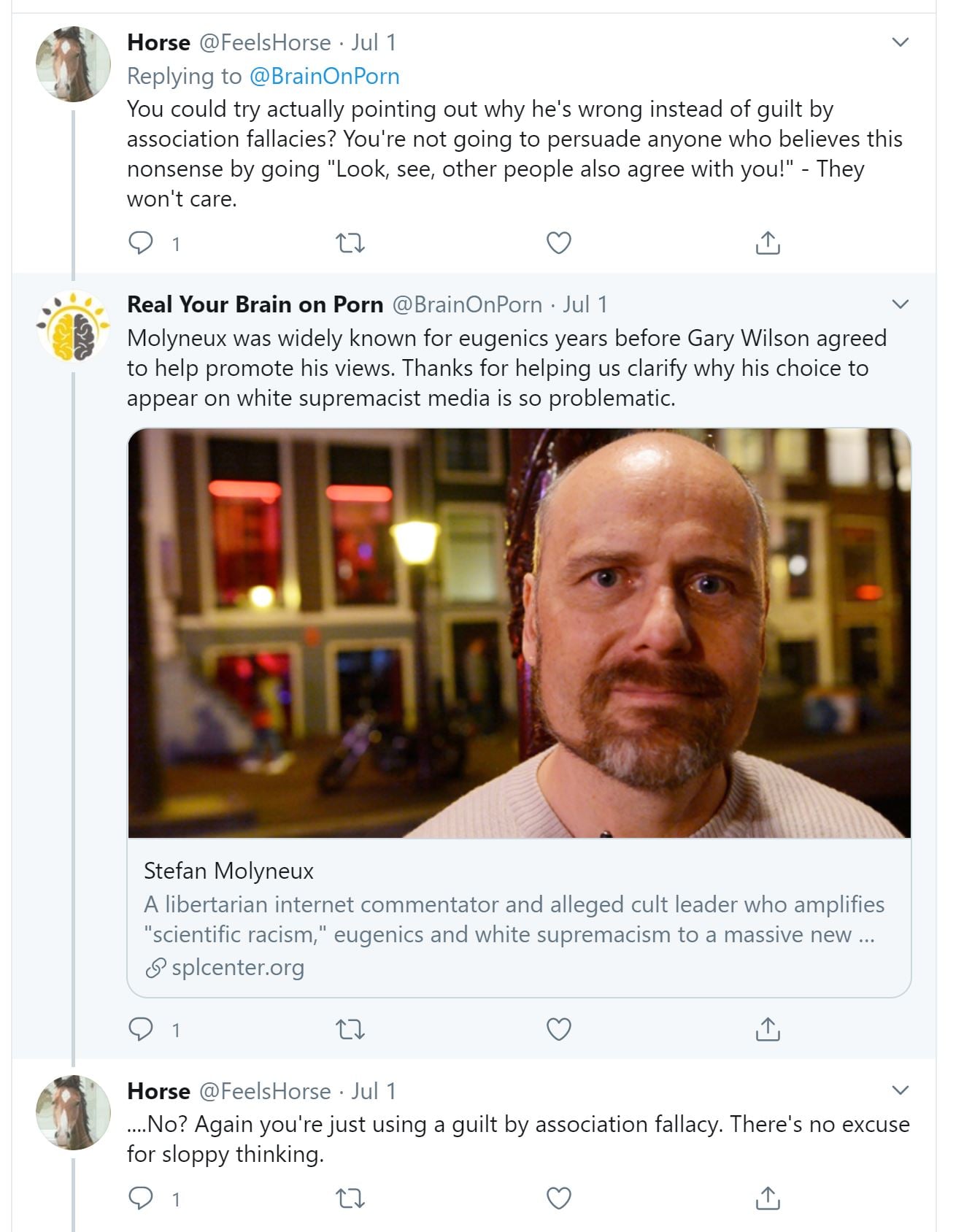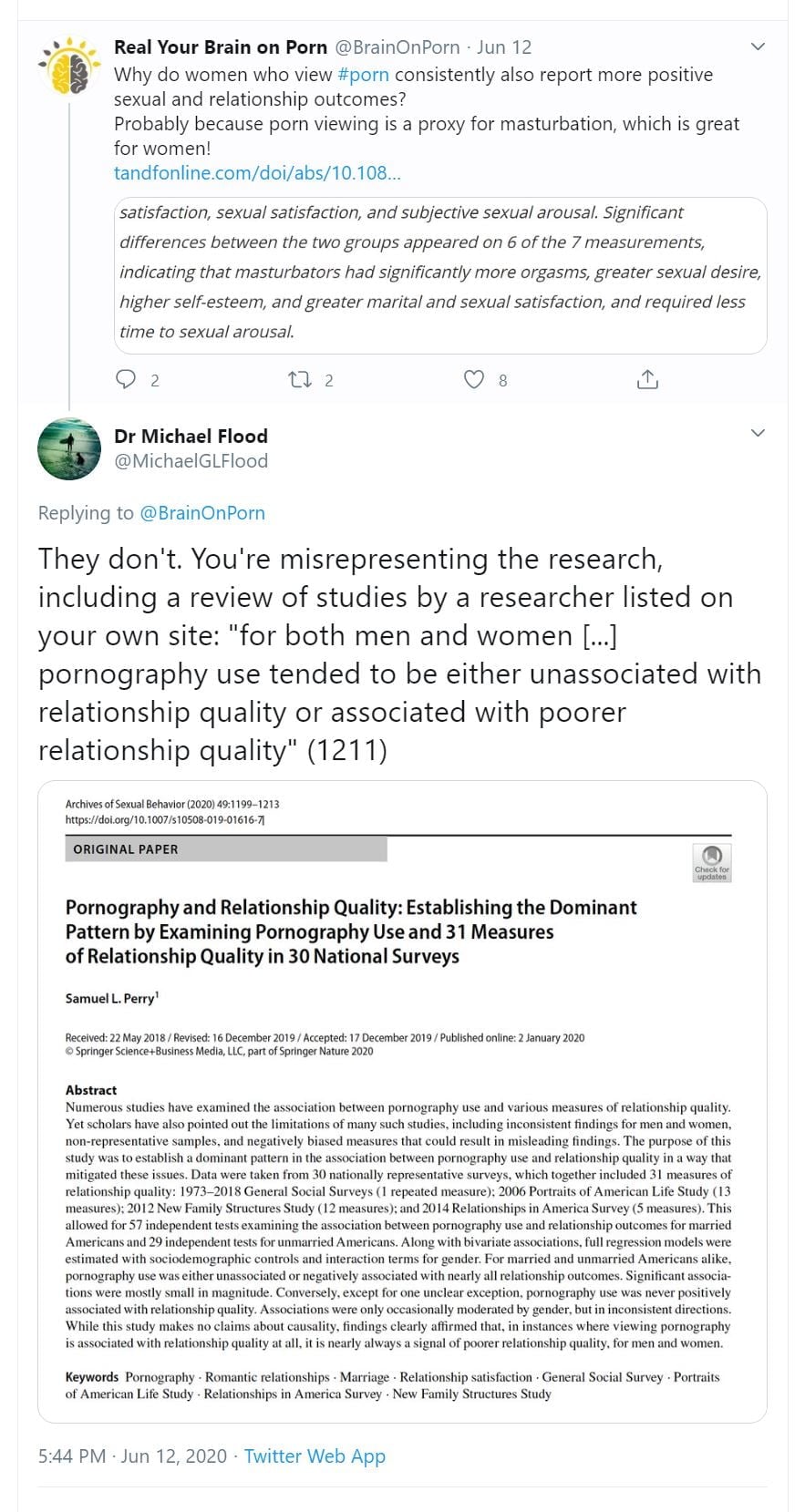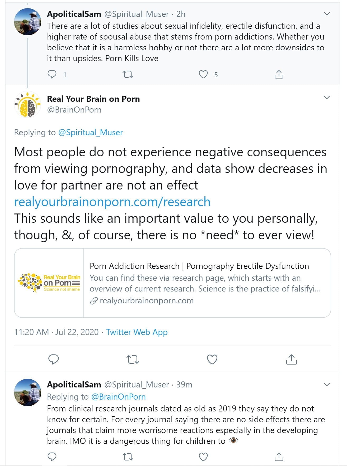 Here, RealYBOP trolls a man in recovery from porn addiction, lying about studies, then blocking him when challenged: