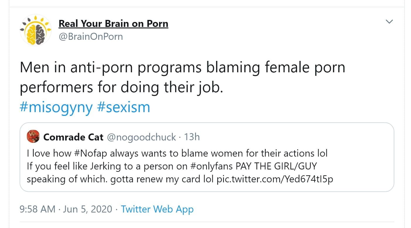 September 6, 2020: More unprovoked attacks on Nofap. So giving up porn = misogyny? Only in RealYBOP’s opinion – and no one else’s.