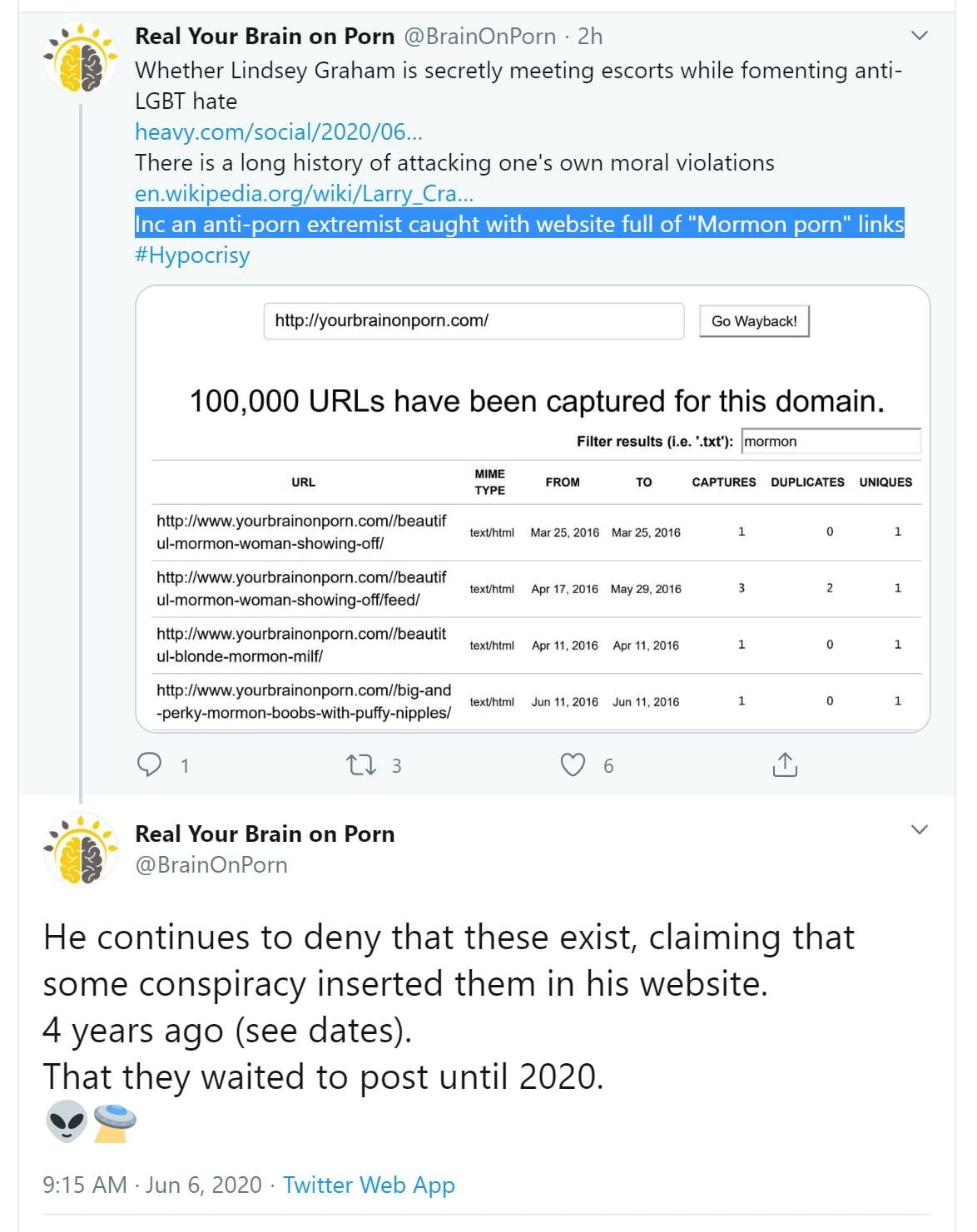 RealYBOP going back to the debunked “Mormon porn” URL’s on the Wayback Machine (but were never on YBOP. Anyone can ask the Wayback Machine to save FAKe URL’s – as I did for my site, and someone lese did for RealYBOP. Extensive page explaining what Prause and Burgess(?) did, and how they did it:Realyourbrainonporn (Daniel Burgess, Nicole Prause) defamation/harassment of Gary Wilson: They “discover” fake porn URLs in the Internet Wayback Archive (August, 2019).