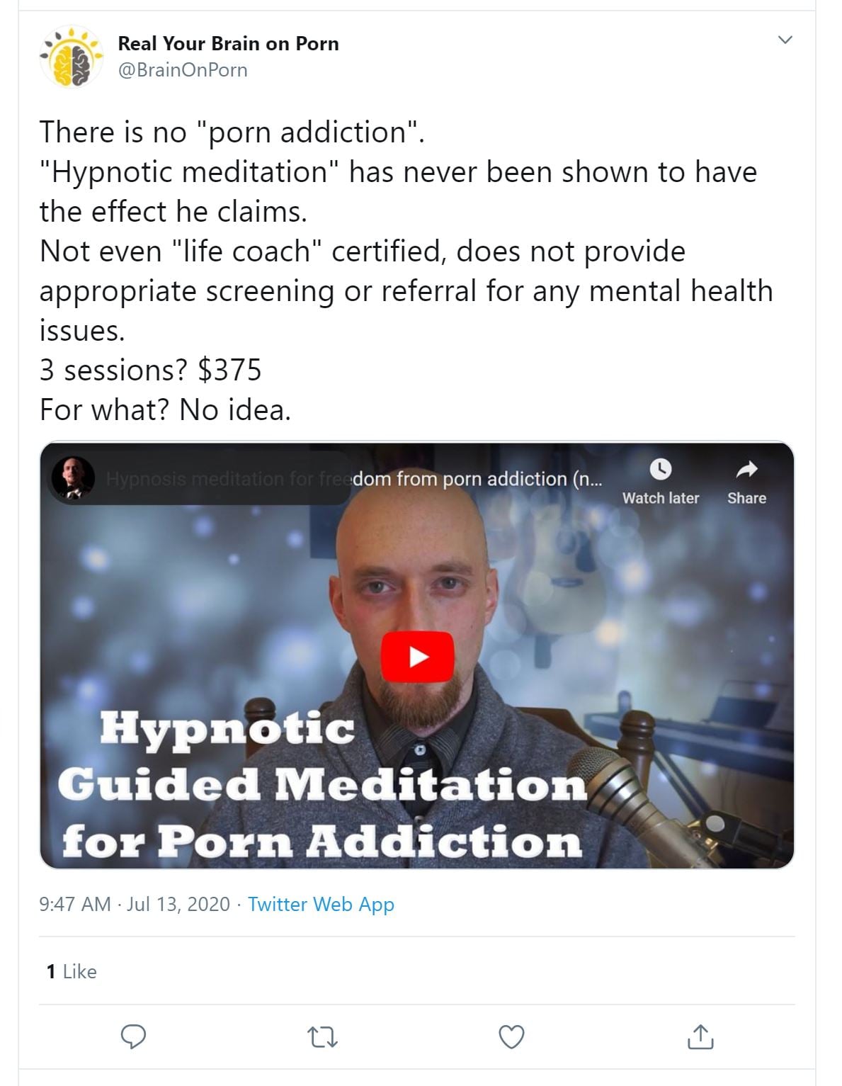 April 21, 2020: Prause is being sued for defamation by Alex Rhodes. Here Prause uses the RealYBOP account to attack/disparage Alex Rhodes and his company (NoFap):