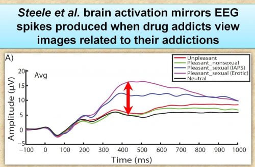 Simple: The claims that the subjects’ brains differed from other types of addicts is without support. In fact, the 2014 Cambridge University study (Voon et al., 2014) analyzed Steele et al. and agreed with Johnson: Steele et al. reported higher P300 in response to sexual images relative to neutral pictures (citation 25). From the Cambridge study: