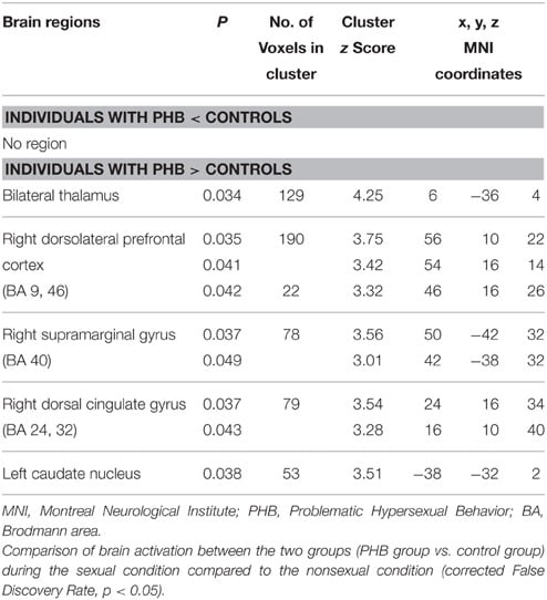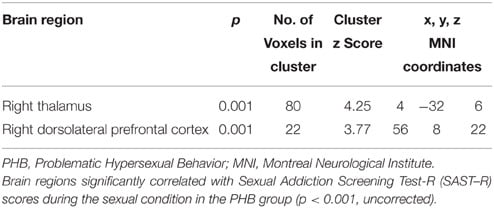 Table 4. Brain regions identified in the correlational analysis in the PHB group during exposure to sexual stimuli.