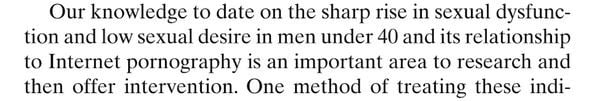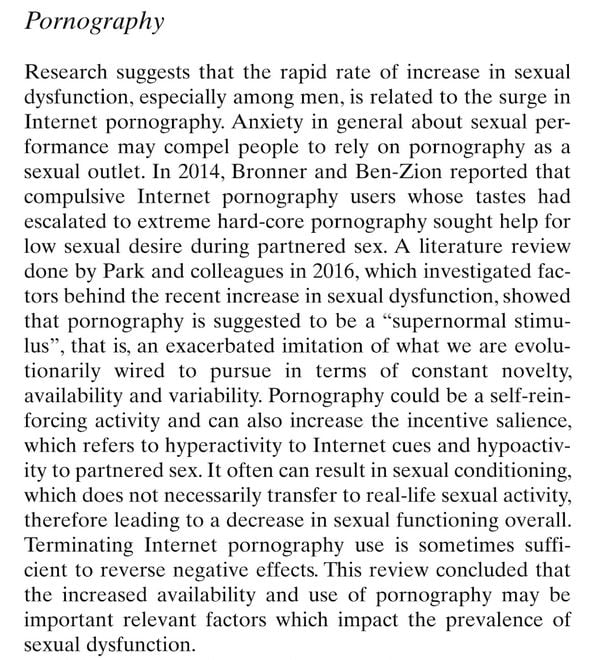 This chapter from a new medical textbook entitled Paternal Postnatal Psychiatric Illnesses addresses porn’s impact on the sexual function of a new father, citing a paper co-authored by this website’s host, “Is Internet Pornography Causing Sexual Dysfunctions? A Review with Clinical Reports.” Here are some excerpts from the chapter: